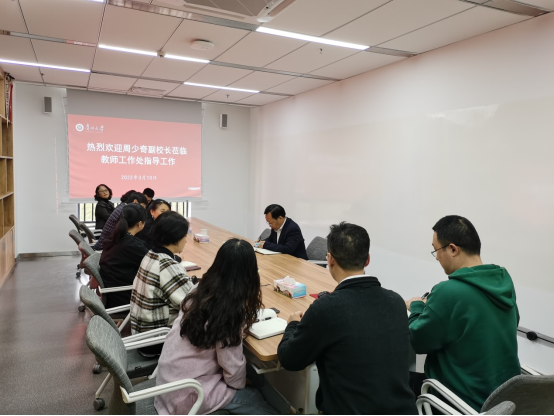 阳气初惊蛰,韶光大地周。3月10日上午,副校长周少奇教授一行到教师工作处调研,调研座谈会在西校区德正楼213会议室举行,教师工作处全体教职工参加座谈会。