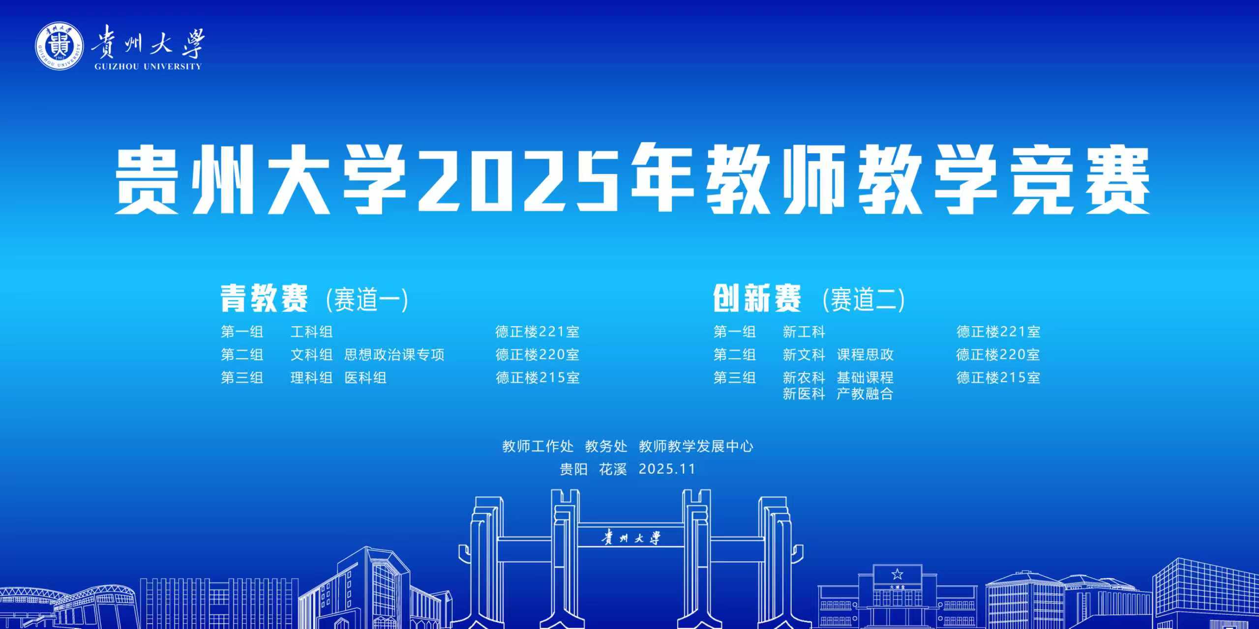 2025年11月12日,贵州大学2025年教师教学竞赛于西校区德正楼圆满举办。本次教学竞赛由教师工作处、教务处和教师教学发展中心联合举办,分为青年教师教学竞赛(以下简称“青教赛”)赛道和教师教学创新大赛(以下简称“创新赛”)赛道。
